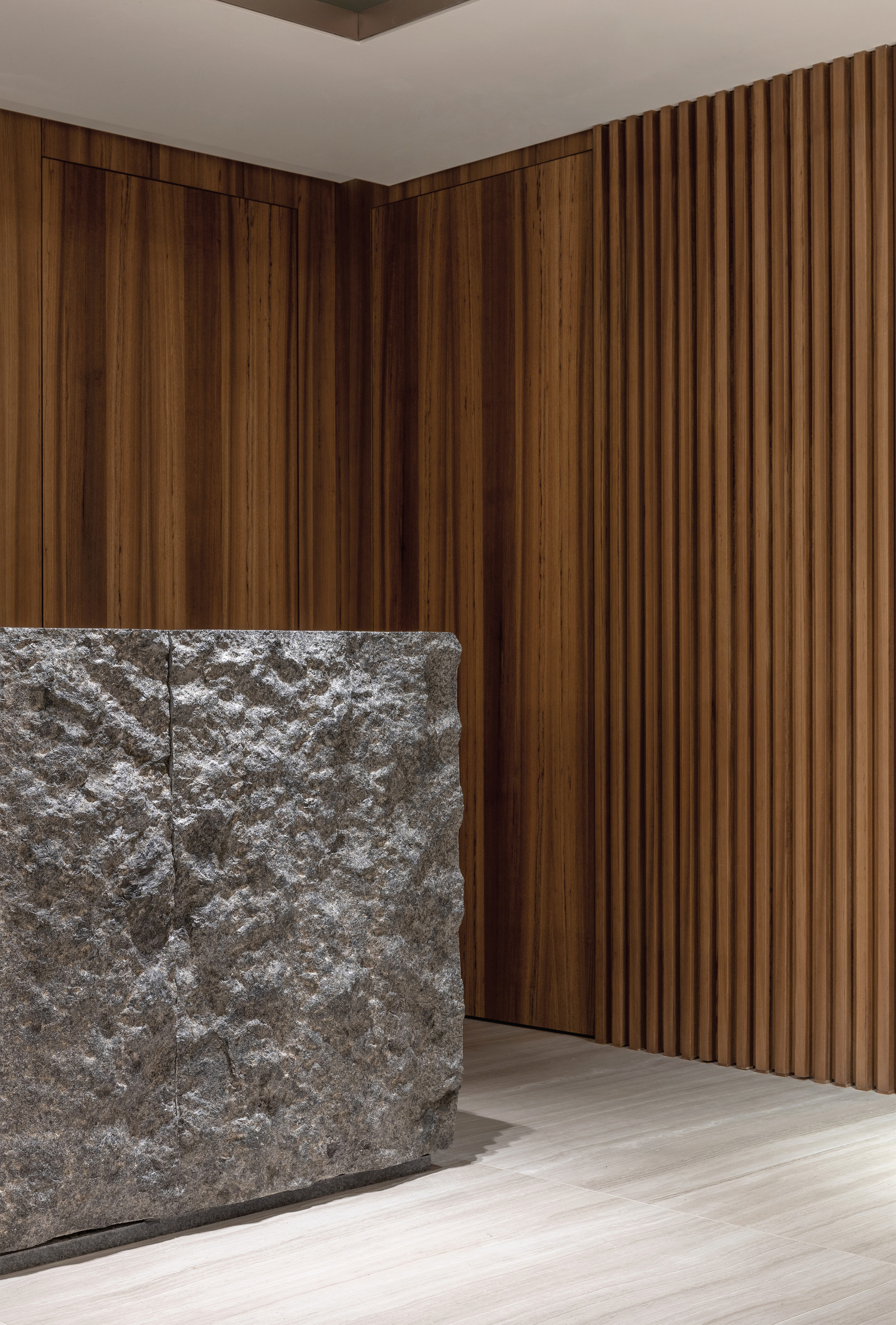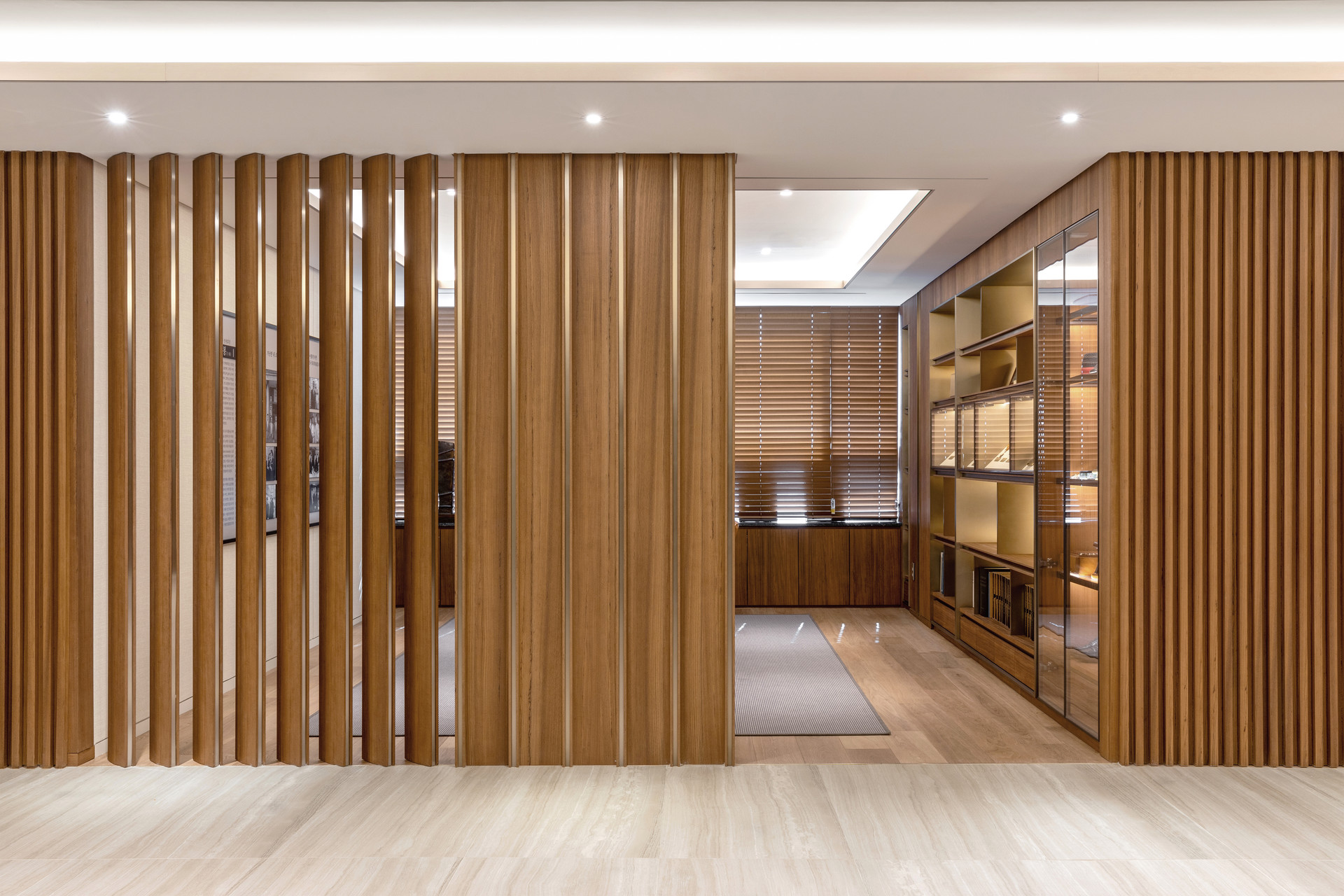‘Nature Gallery’라는 컨셉 아래, 자연의 본질적인 아름다움과 기업의 역사적 가치를 공간에 녹여냈습니다. 장식적 요소를 최소화하고, 천연 소재가 지닌 본연의 물성을 최대한 살려 절제된 고급스러움을 표현했습니다. 원목, 석재, 천연 직물 등 자연에서 얻은 재료를 사용하여 따뜻하고 안정적인 분위기를 조성하고, 컬러 또한 자연이 주는 편안한 색감을 중심으로 구성해 심리적인 안정을 더했습니다.